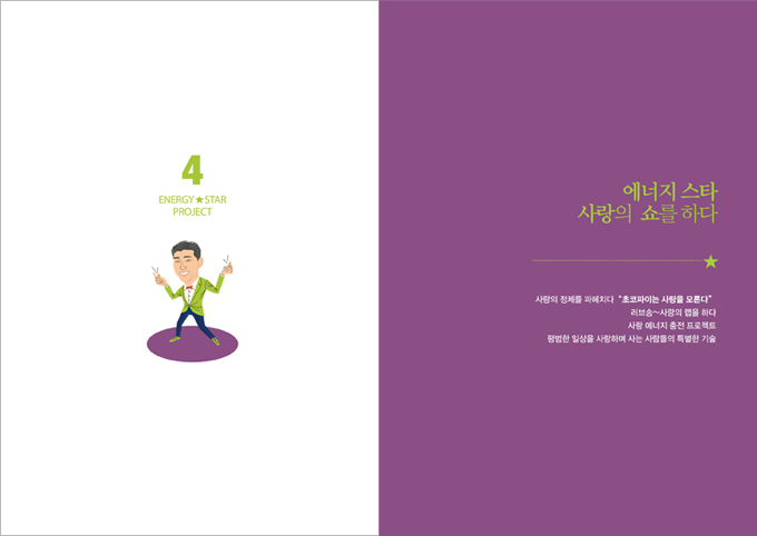 책소개 대한민국 에너지코치 NO.1 곽동근 소장의 에너지 넘치는 인생 만들기 프로젝트! 반복되는 지루한 일상, 쌓여만 가는 스트레스, 무기력한 하루하루를 보내며 자신이 바란 삶은 이렇지 않았다고 의아해 하고 있는 당신이라면. 이 책은 아무리 오랜 세월이 흘러도 변하지 않을 진리-성공, 행복, 사랑, 인생 그리고 나눔이라는 다섯 가지 에너지를 담아내어, 당신의 삶을 에너지 넘치는 삶으로 변화시키고 당신을 빛나는 인생을 사는 에너지★스타로 탈바꿈하도록 이끄는 원동력이 될 것이다.